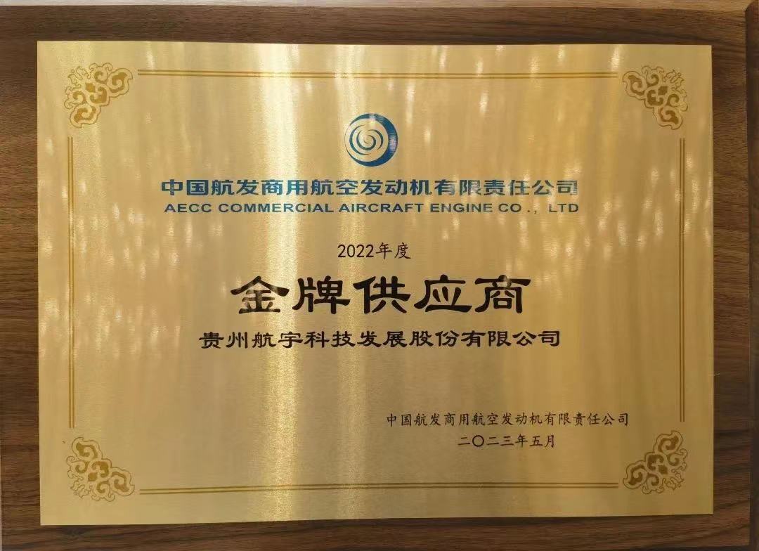 航宇科技榮獲中國航發(fā)商發(fā)“2022年度金牌供應商”榮譽稱號